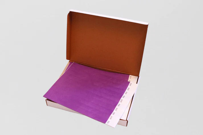 Esplora la nostra gamma di braccialetti Tyvek perfetti per festival, eventi e funzioni. I nostri braccialetti sono durevoli, resistenti all'acqua e possono essere personalizzati con stampe per creare un look unico per il tuo prossimo evento.